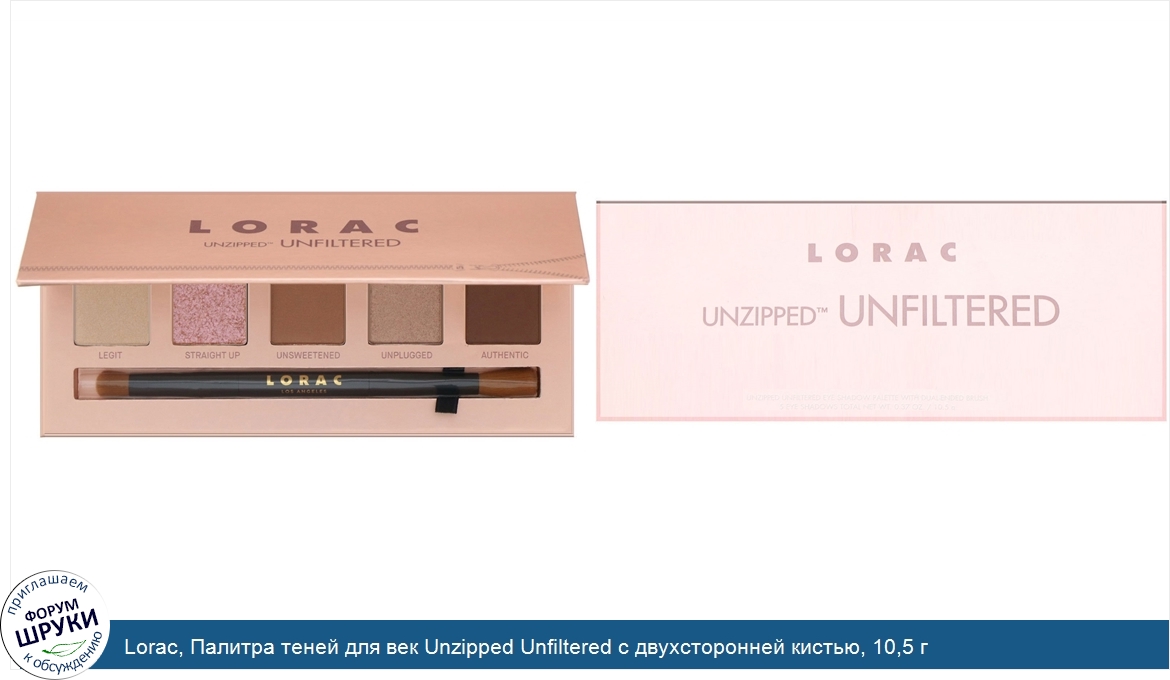 Друзья, если у вас есть отзыв/дополнение/комментарий/вопрос относительно Lorac, Палитра теней для век Unzipped Unfiltered с двухсторонней кистью, 10,5 г - напишите его ответом в эту тему (это будет полезно всему сообществу в целом и вам в отдельности).