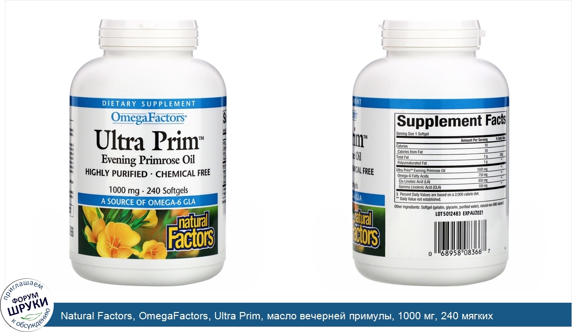 Друзья, если у вас есть отзыв/дополнение/комментарий/вопрос относительно Natural Factors, OmegaFactors, Ultra Prim, масло вечерней примулы, 1000 мг, 240 мягких желатиновых капсул - напишите его ответом в эту тему (это будет полезно всему сообществу в целом и вам в отдельности).