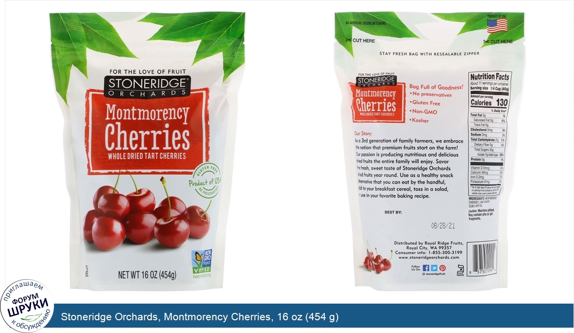 [DESCRIPT]For The Love of Fruit. Whole Dried Tart Cherries. Gluten Free. No Preservatives. Kosher Parve. Non GMO Project Verified. No Artificial Colors or Flavors. Stay Fresh Bag with Resealable Zipper. Bag Full of Goodness! Our Story:. As a 3rd generation of family farmers, we embrace the notion that premium fruits start on the farm! Our passion is producing nutritious and delicious dried fruits the entire family will enjoy. Savor the fresh, sweet taste of Stoneridge Orchards dried fruits year round.[/DESCRIPT]... (описание дополняется)