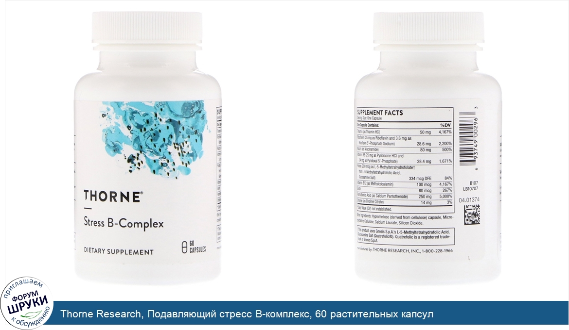 Категории: Thorne Research, Пищевые добавки, Витамины, Витамин B, Комплекс витаминов группы B, Торн Ресерч, 49834