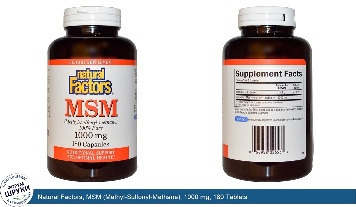 Друзья, если у вас есть отзыв/дополнение/комментарий/вопрос относительно Natural Factors, MSM (Methyl-Sulfonyl-Methane), 1000 mg, 180 Tablets - напишите его ответом в эту тему (это будет полезно всему сообществу в целом и вам в отдельности).