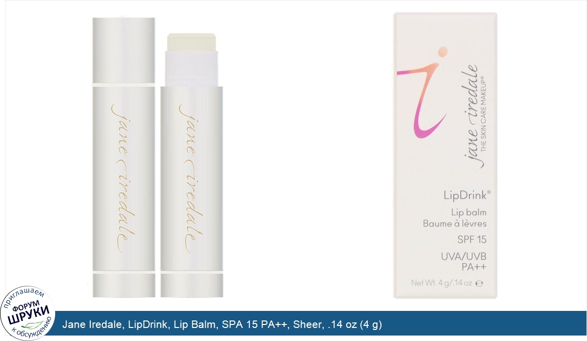 Jane Iredale, LipDrink, Lip Balm, SPA 15 PA++, Sheer, .14 oz (4 g)