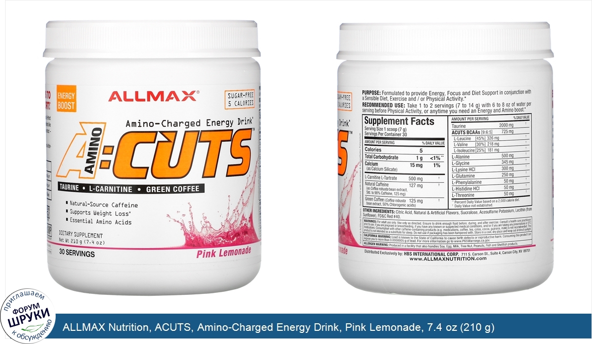 Друзья, если у вас есть отзыв/дополнение/комментарий/вопрос относительно ALLMAX Nutrition, ACUTS, Amino-Charged Energy Drink, Pink Lemonade, 7.4 oz (210 g) - напишите его ответом в эту тему (это будет полезно всему сообществу в целом и вам в отдельности).