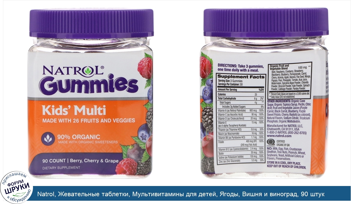 Друзья, если у вас есть отзыв/дополнение/комментарий/вопрос относительно Natrol, Жевательные таблетки, Мультивитамины для детей, Ягоды, Вишня и виноград, 90 штук - напишите его ответом в эту тему (это будет полезно всему сообществу в целом и вам в отдельности).