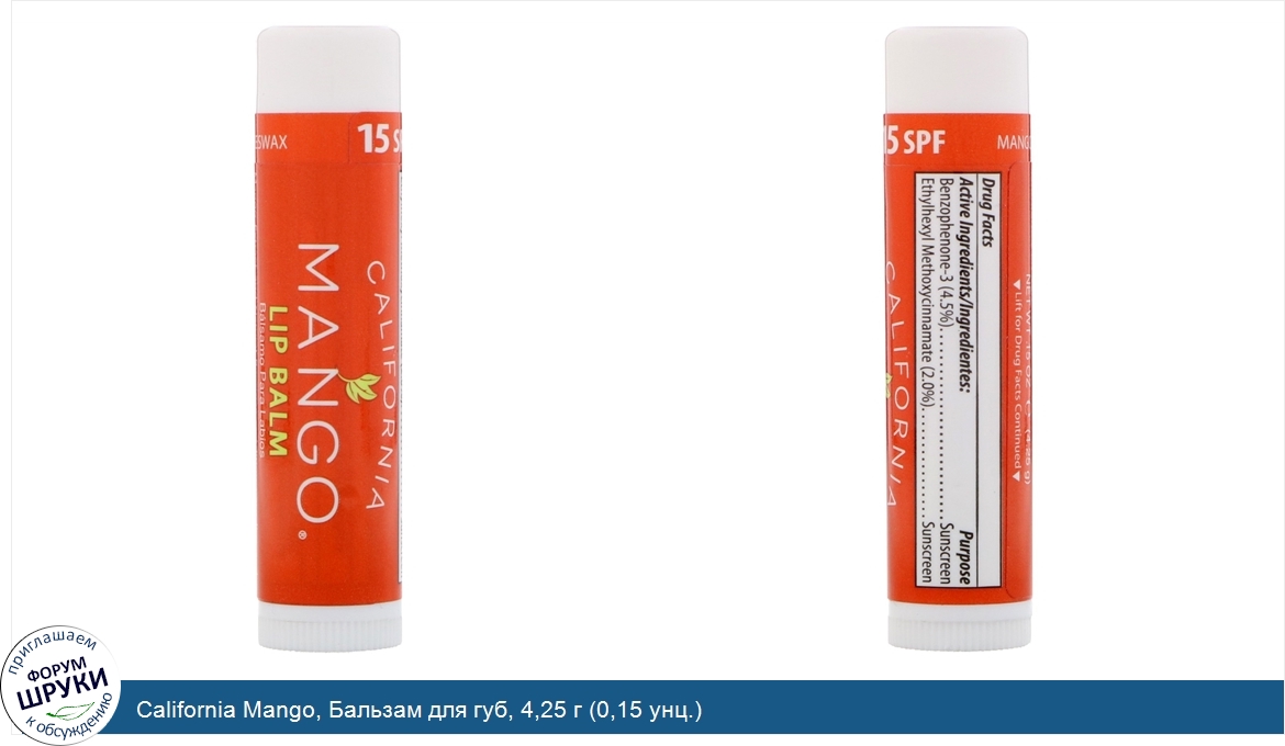 Друзья, если у вас есть отзыв/дополнение/комментарий/вопрос относительно California Mango, Бальзам для губ, 4,25 г (0,15 унц.) - напишите его ответом в эту тему (это будет полезно всему сообществу в целом и вам в отдельности).