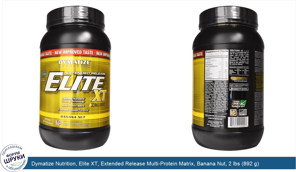 Dymatize Nutrition, Elite XT, Extended Release Multi-Protein Matrix, Banana Nut, 2 lbs (892 g)