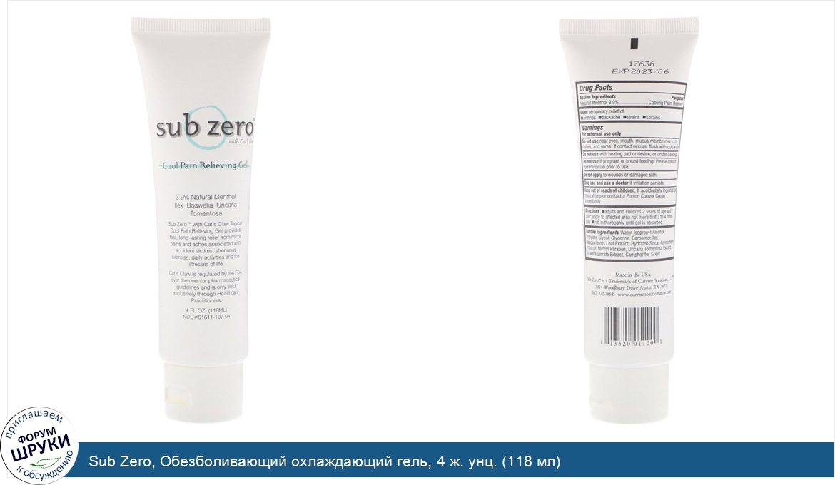 Sub Zero, Обезболивающий охлаждающий гель, 4 ж. унц. (118 мл)