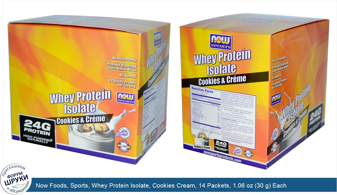 Now Foods, Sports, Whey Protein Isolate, Cookies Cream, 14 Packets, 1.06 oz (30 g) Each