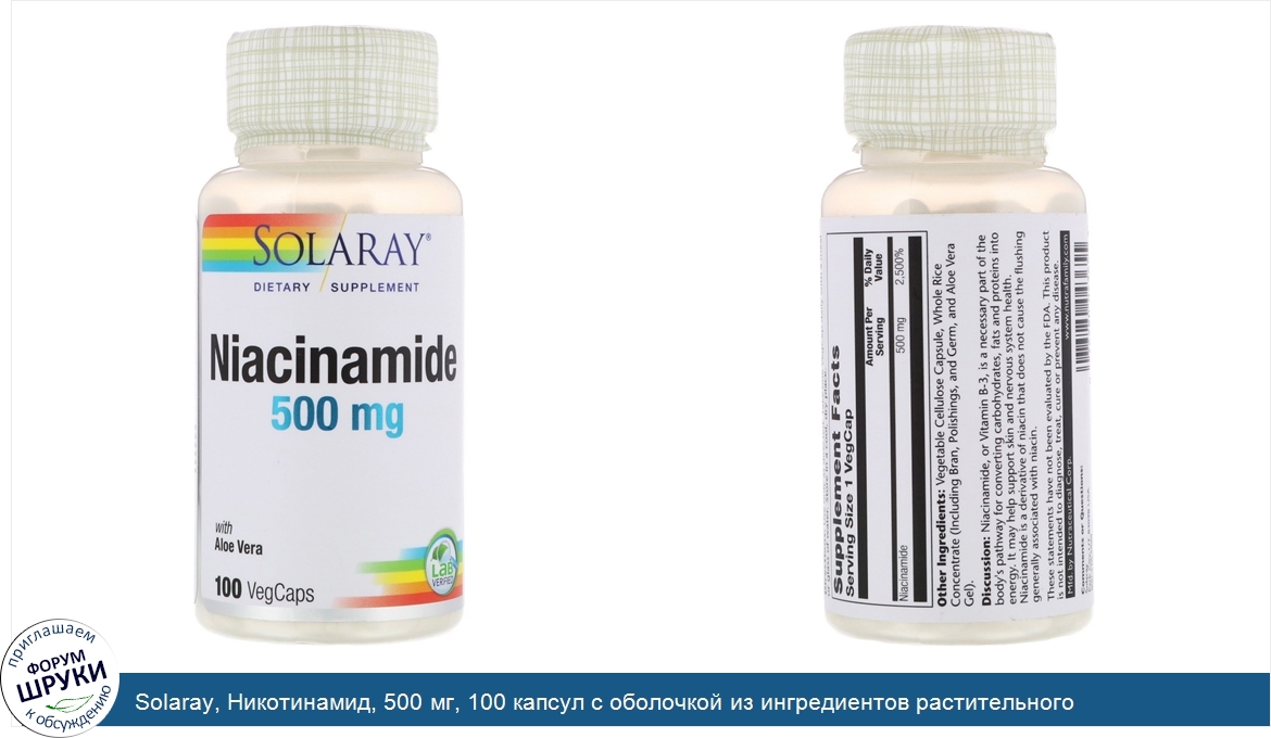 Друзья, если у вас есть отзыв/дополнение/комментарий/вопрос относительно Solaray, Никотинамид, 500 мг, 100 капсул с оболочкой из ингредиентов растительного происхождения - напишите его ответом в эту тему (это будет полезно всему сообществу в целом и вам в отдельности).