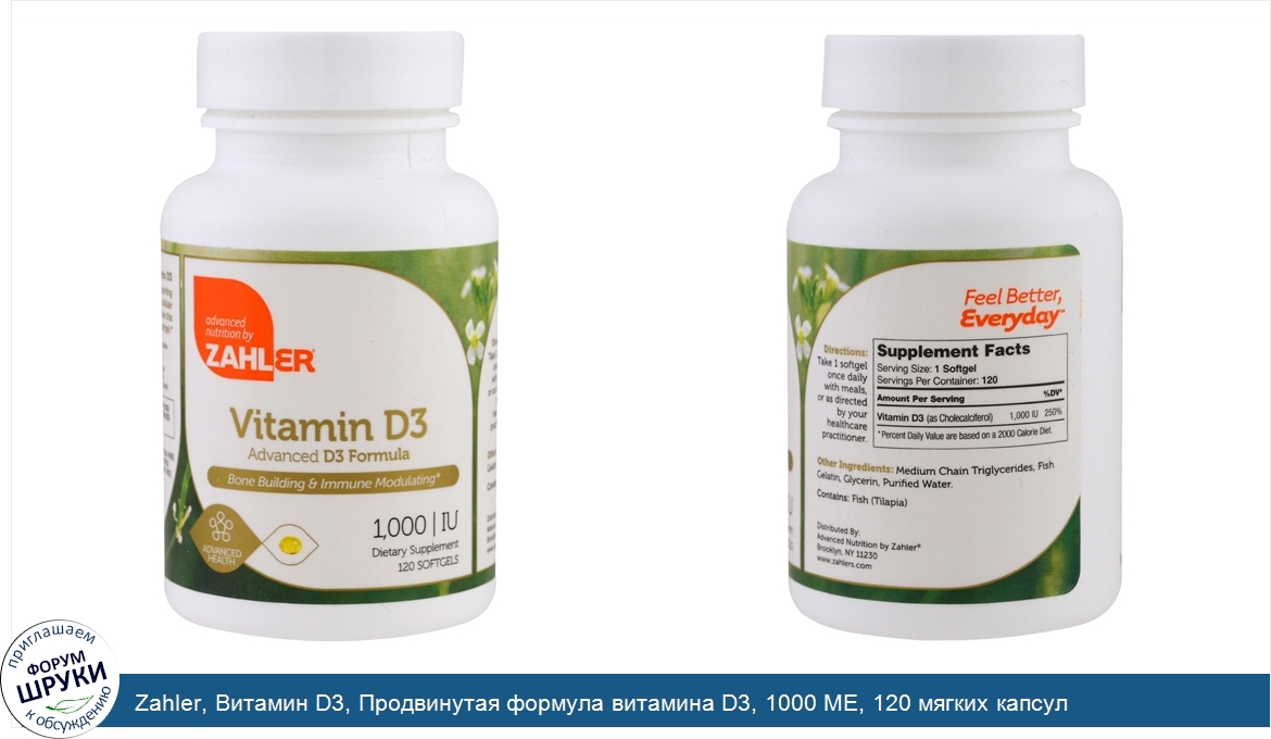 Друзья, если у вас есть отзыв/дополнение/комментарий/вопрос относительно Zahler, Витамин D3, Продвинутая формула витамина D3, 1000 МЕ, 120 мягких капсул - напишите его ответом в эту тему (это будет полезно всему сообществу в целом и вам в отдельности).