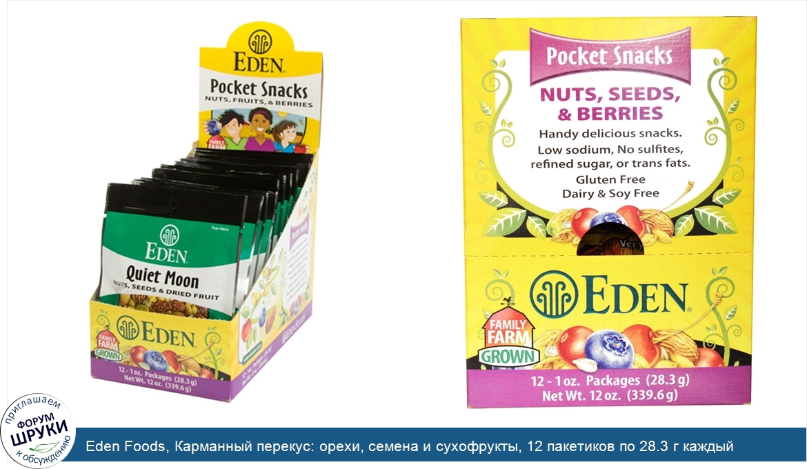 Друзья, если у вас есть отзыв/дополнение/комментарий/вопрос относительно Eden Foods, Карманный перекус: орехи, семена и сухофрукты, 12 пакетиков по 28.3 г каждый - напишите его ответом в эту тему (это будет полезно всему сообществу в целом и вам в отдельности).