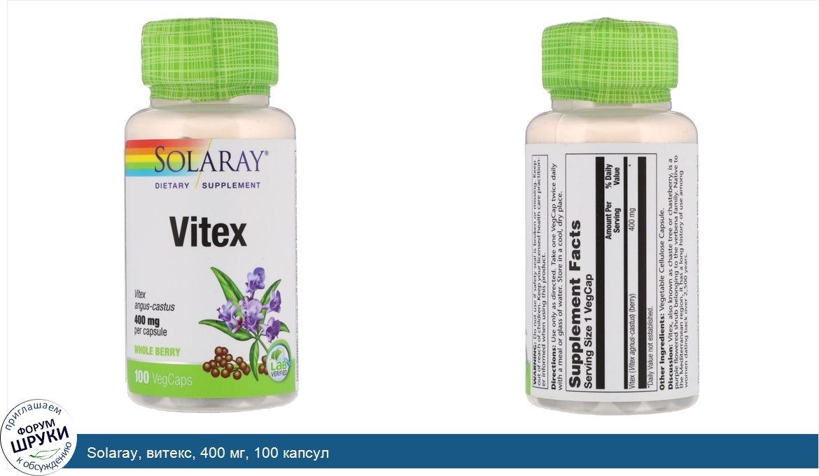 Друзья, если у вас есть отзыв/дополнение/комментарий/вопрос относительно Solaray, витекс, 400 мг, 100 капсул - напишите его ответом в эту тему (это будет полезно всему сообществу в целом и вам в отдельности).