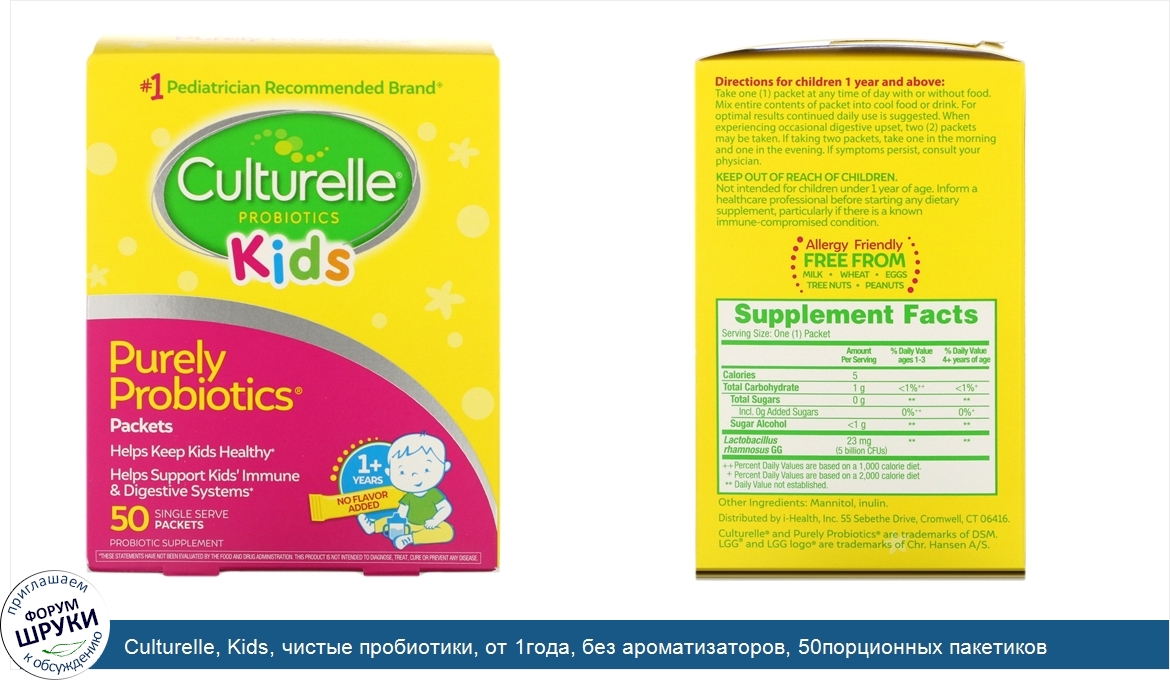 [DESCRIPT]Бренд №1 по рекомендациям педиатров♦. Сохраняет детское здоровье. Помогает поддерживать здоровье иммунной и пищеварительной систем детей. Пробиотическая добавка. Без вкусовых добавок. LGG® натурального происхождения. Самый изученный штамм у детей†. Чистота и эффективность***. Не содержит молочных продуктов, глютена и сои^. Особенности Culturelle®∞. Пакетики для детей Purely Probiotics® от Culturelle® разработаны, чтобы сохранить здоровье ваших детей в лучшем виде, независимо от того, что может произойти. Этот продукт содержит пробиотик LGG®, наиболее клинически изученный штамм у детей†, который помогает поддерживать здоровье как иммунной, так и пищеварительной системы. Добавьте его в любимое блюдо и напиток вашего ребенка. Поддерживает естественную иммунную защиту. Повышает здоровье пищеварительной системы. Ценности нашего бренда. Наша миссия — укрепить ваше здоровье и улучшить самочувствие, а также повысить здоровье вашей семьи. Мы верим в честность, поэтому придерживаемся самых высоких стандартов качества. Мы верим в естественную силу микрофлоры, в научные исследования и продукты, которые полностью раскрывают ее потенциал. Мы верим в бескомпромиссное качество, безопасность и доказанную эффективность. Мы верим, что дадим вам возможность с уверенностью принимать каждый день. Подходит аллергикам. Не содержит. молока. пшеницы. яиц. древесных орехов. арахиса. † На основе количества исследований Lactobacillus rhamnosus GG по состоянию на январь 2019 года. *** Гарантированная эффективность до даты, указанной на упаковке, при хранении в соответствии с указаниями. ♦ Согласно проведенному в 2018 году опросу педиатров, рекомендующих прием пробиотиков. ^ Соответствует рекомендациям FDA для безглютеновых продуктов. ‡ Не является низкокалорийным продуктом.[/DESCRIPT]... (описание дополняется)