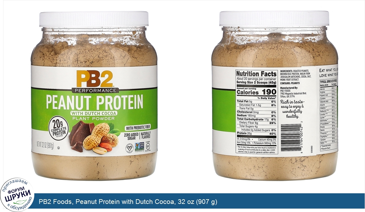 Друзья, если у вас есть отзыв/дополнение/комментарий/вопрос относительно PB2 Foods, Peanut Protein with Dutch Cocoa, 32 oz (907 g) - напишите его ответом в эту тему (это будет полезно всему сообществу в целом и вам в отдельности).