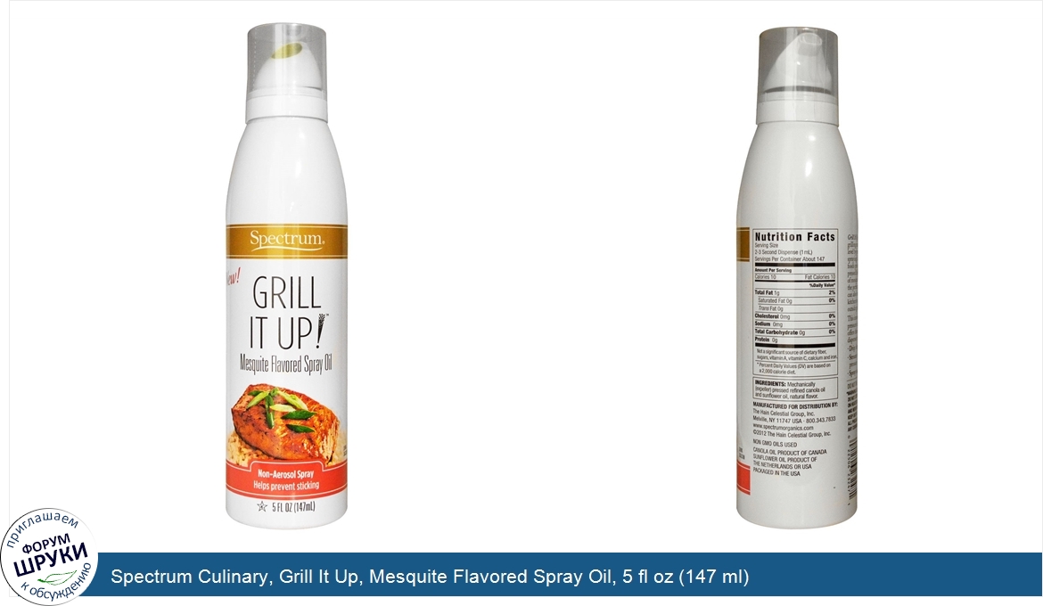 Spectrum Culinary, Grill It Up, Mesquite Flavored Spray Oil, 5 fl oz (147 ml)