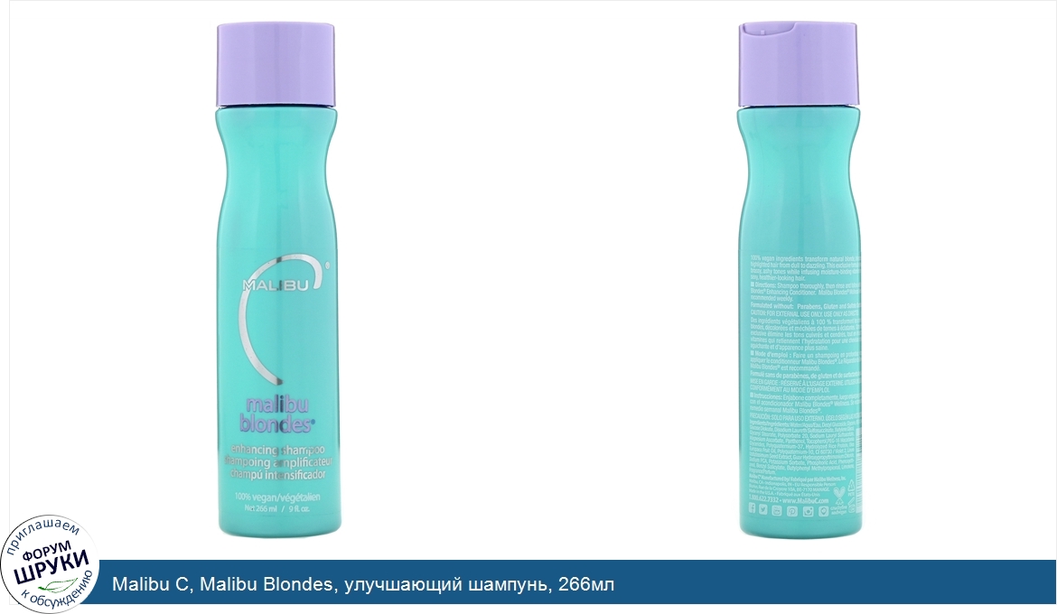 Друзья, если у вас есть отзыв/дополнение/комментарий/вопрос относительно Malibu C, Malibu Blondes, улучшающий шампунь, 266мл - напишите его ответом в эту тему (это будет полезно всему сообществу в целом и вам в отдельности).