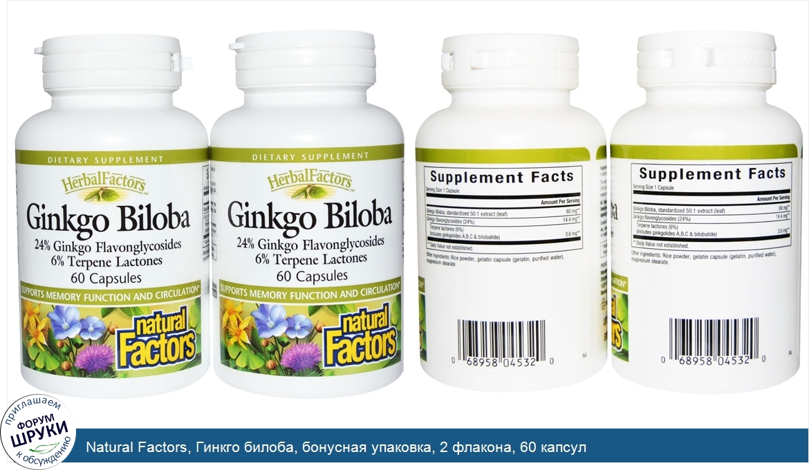 Друзья, если у вас есть отзыв/дополнение/комментарий/вопрос относительно Natural Factors, Гинкго билоба, бонусная упаковка, 2 флакона, 60 капсул - напишите его ответом в эту тему (это будет полезно всему сообществу в целом и вам в отдельности).