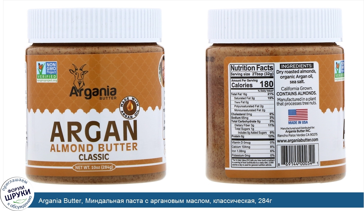 Категории: Продукты питания, Масла, спреды и пресервы, Масла и спреды, Миндаль, Argania Butter, 95282
