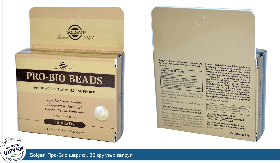 Друзья, если у вас есть отзыв/дополнение/комментарий/вопрос относительно Solgar, Про-Био шарики, 30 круглых капсул - напишите его ответом в эту тему (это будет полезно всему сообществу в целом и вам в отдельности).