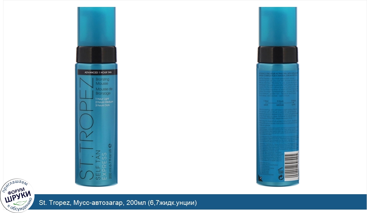 Друзья, если у вас есть отзыв/дополнение/комментарий/вопрос относительно St. Tropez, Мусс-автозагар, 200мл (6,7жидк.унции) - напишите его ответом в эту тему (это будет полезно всему сообществу в целом и вам в отдельности).