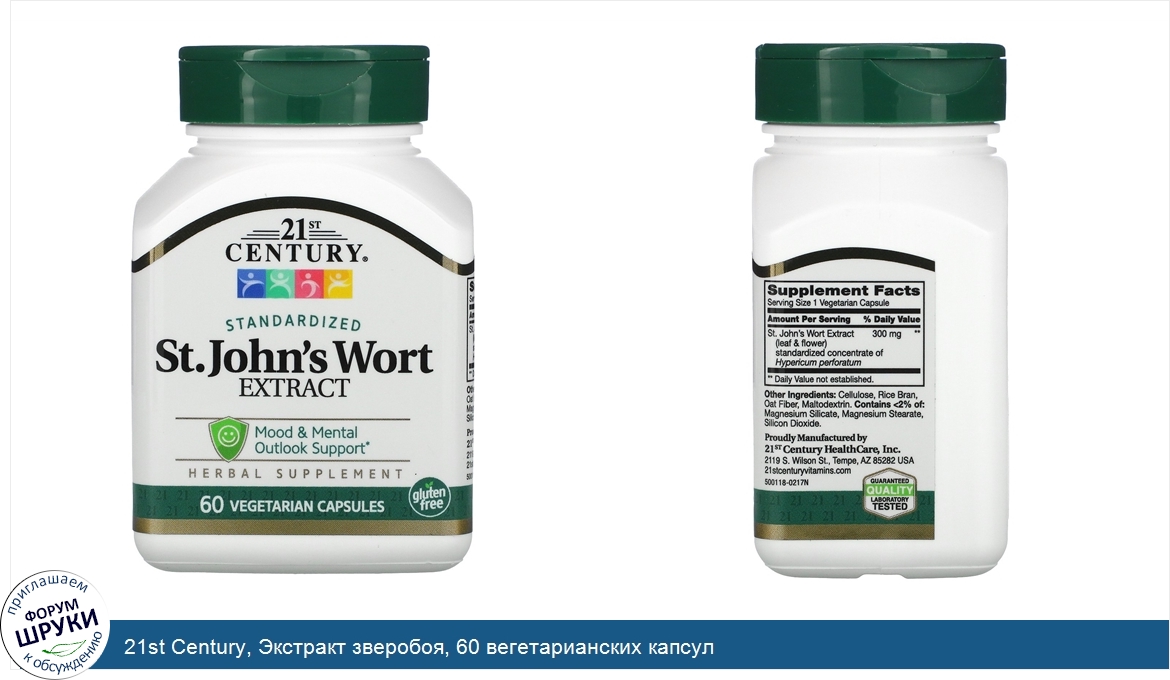 21st Century, Экстракт зверобоя, 60 вегетарианских капсул