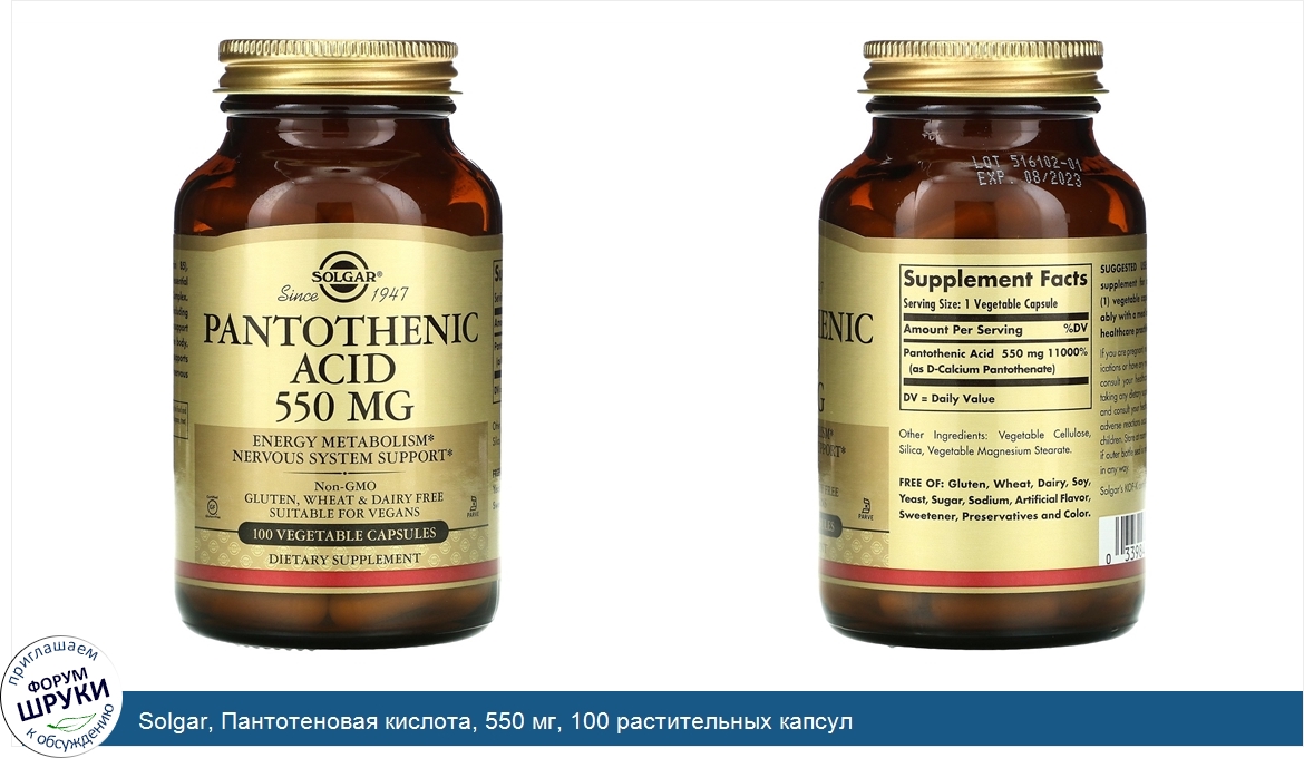 Друзья, если у вас есть отзыв/дополнение/комментарий/вопрос относительно Solgar, Пантотеновая кислота, 550 мг, 100 растительных капсул - напишите его ответом в эту тему (это будет полезно всему сообществу в целом и вам в отдельности).
