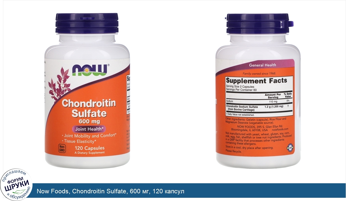 Now Foods, Chondroitin Sulfate, 600 мг, 120 капсул