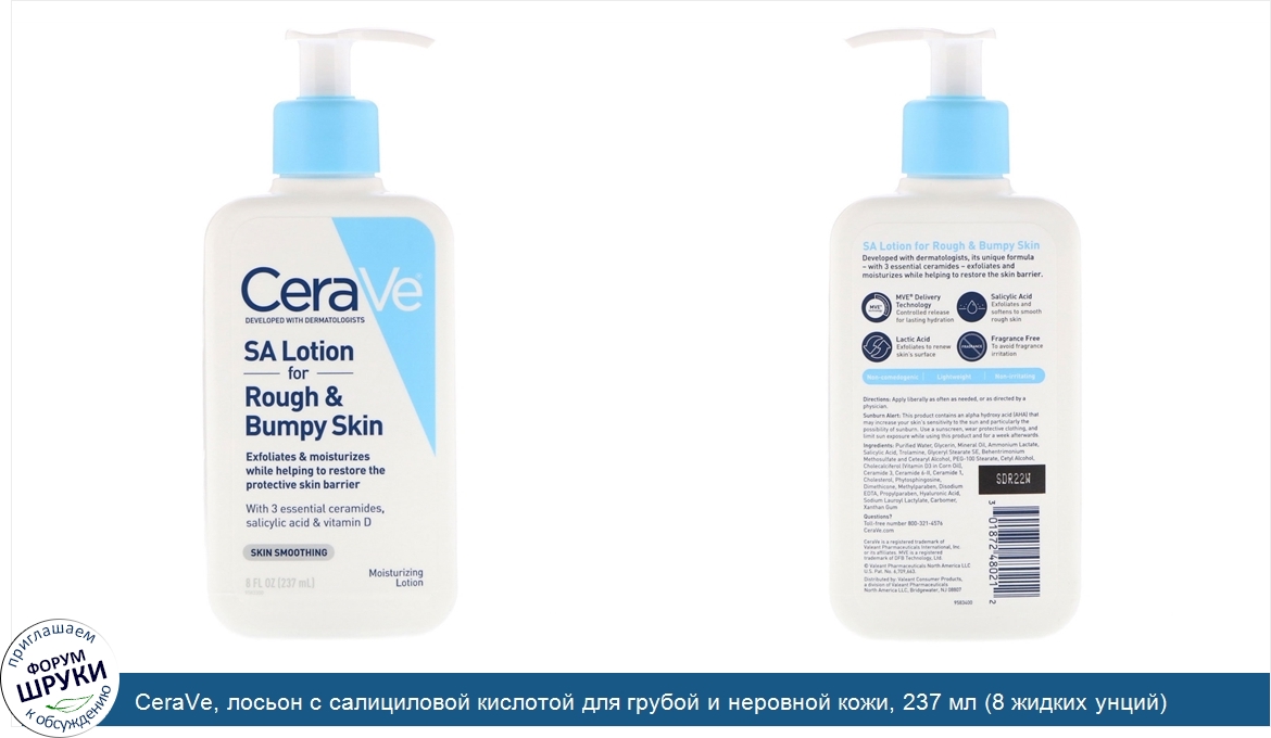 Друзья, если у вас есть отзыв/дополнение/комментарий/вопрос относительно CeraVe, лосьон с салициловой кислотой для грубой и неровной кожи, 237 мл (8 жидких унций) - напишите его ответом в эту тему (это будет полезно всему сообществу в целом и вам в отдельности).
