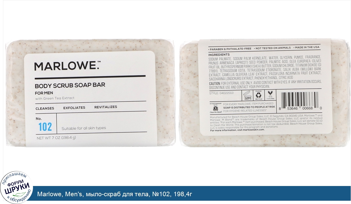 Друзья, если у вас есть отзыв/дополнение/комментарий/вопрос относительно Marlowe, Men's, мыло-скраб для тела, №102, 198,4г - напишите его ответом в эту тему (это будет полезно всему сообществу в целом и вам в отдельности).