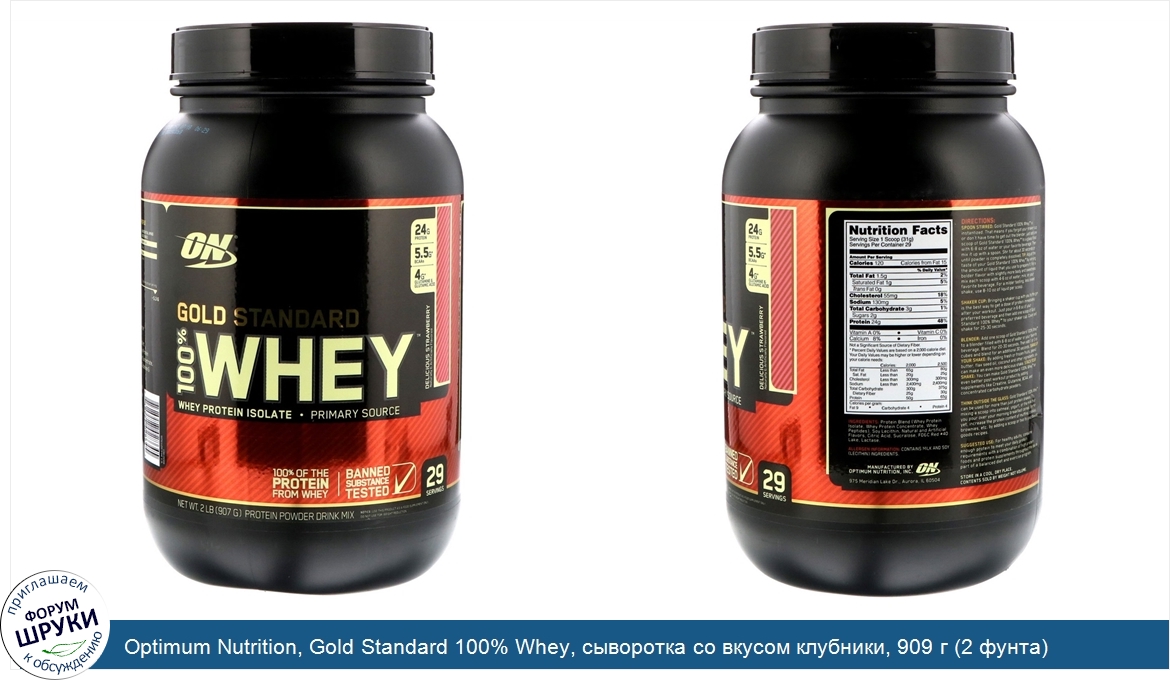 ru Optimum Nutrition, Gold Standard 100% Whey, сыворотка со вкусом клубники, 909 г (2 фунта)