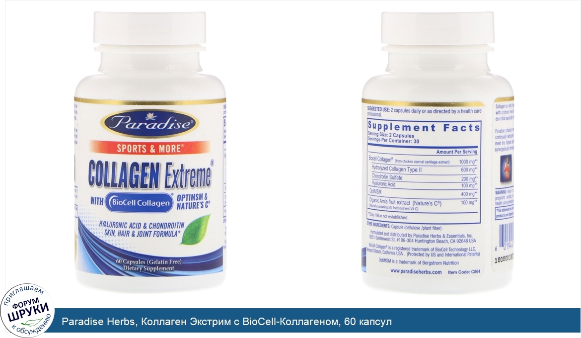 Paradise Herbs, Коллаген Экстрим с BioCell-Коллагеном, 60 капсул