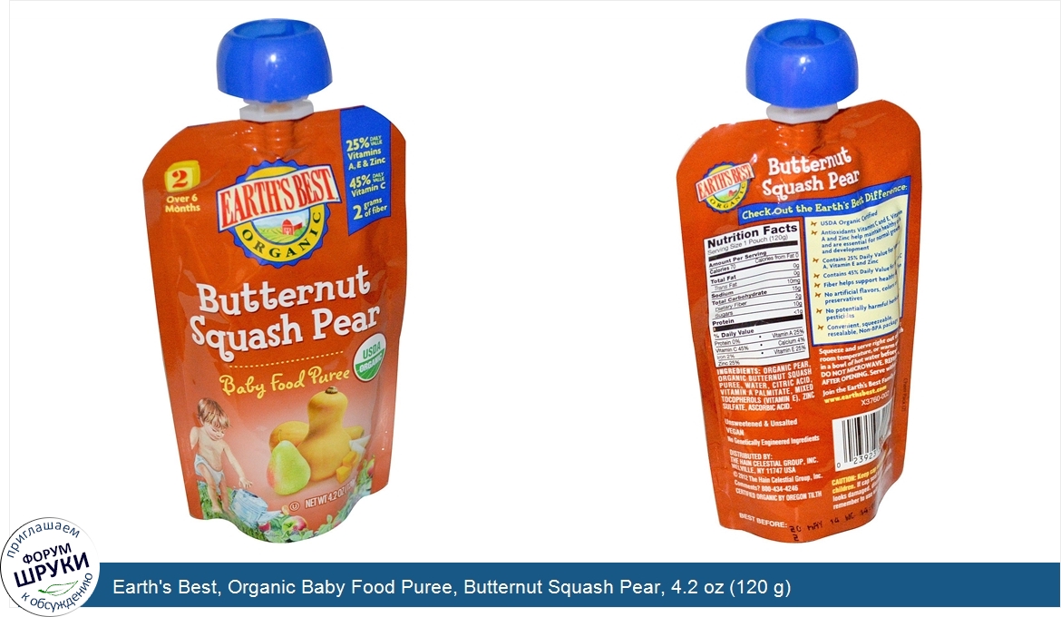 Друзья, если у вас есть отзыв/дополнение/комментарий/вопрос относительно Earth's Best, Organic Baby Food Puree, Butternut Squash Pear, 4.2 oz (120 g) - напишите его ответом в эту тему (это будет полезно всему сообществу в целом и вам в отдельности).