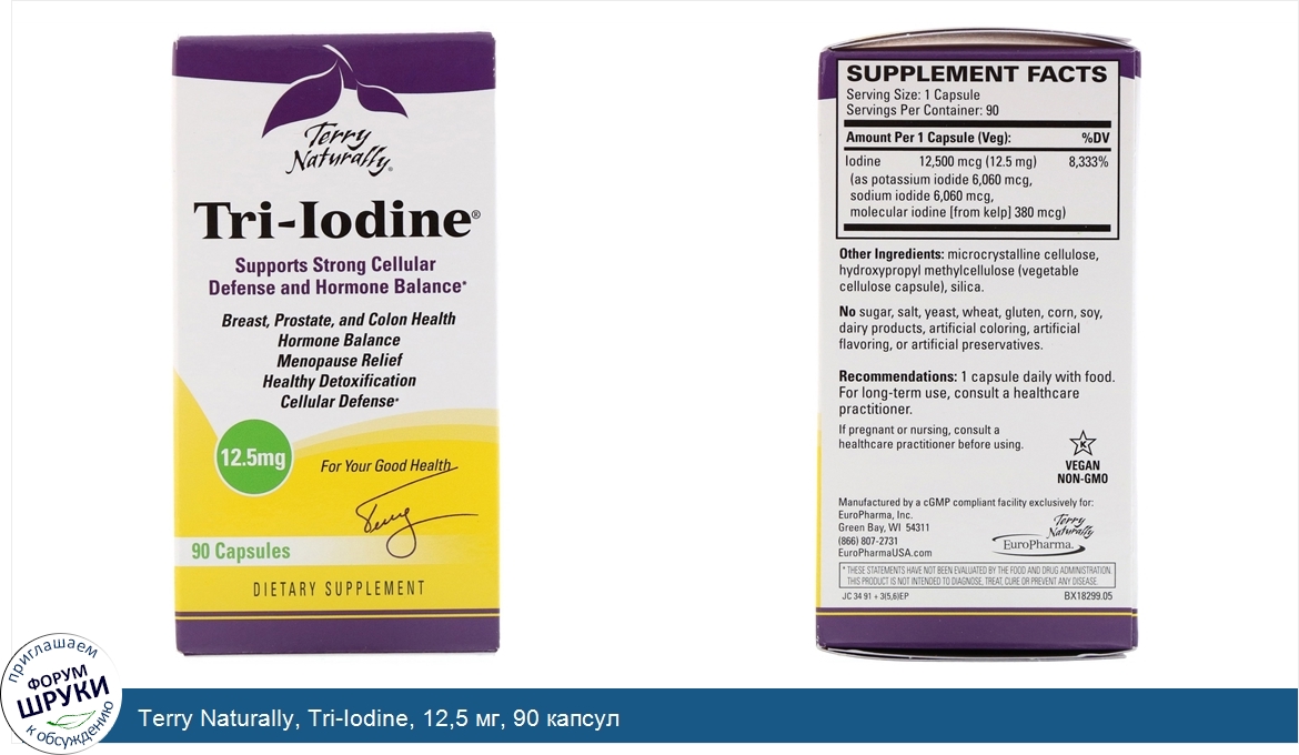 Terry Naturally, Tri-Iodine, 12,5 мг, 90 капсул