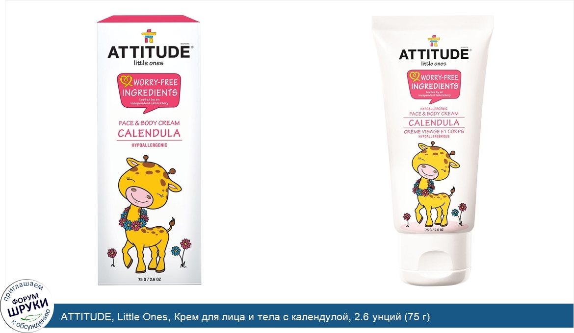 Друзья, если у вас есть отзыв/дополнение/комментарий/вопрос относительно ATTITUDE, Little Ones, Крем для лица и тела с календулой, 2.6 унций (75 г) - напишите его ответом в эту тему (это будет полезно всему сообществу в целом и вам в отдельности).