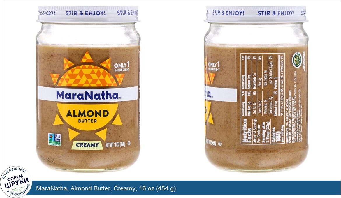 Друзья, если у вас есть отзыв/дополнение/комментарий/вопрос относительно MaraNatha, Almond Butter, Creamy, 16 oz (454 g) - напишите его ответом в эту тему (это будет полезно всему сообществу в целом и вам в отдельности).