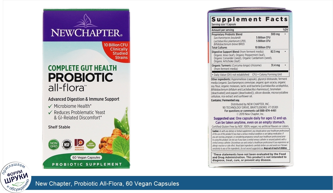 [DESCRIPT]10 Billion CFU Clinically Studied Strains. Complete Gut Health. Advanced Digestion Immune Support. Microbiome Health. Reduces Problematic Yeast Gl-Related Discomfort. Shelf Stable. Non-GMO Project Verified. Certified Gluten Free by NSF. Identity Assured. 100% Vegan. Probiotic Supplement. No Artificial Flavors or Colors. New Chapter's Guiding Principles. To Deliver the Wisdom of Nature thus relieving suffering and promoting optimal health. To advance the organic mission, nourishing body and soul with the healing intelligence of pure whole foods and herbal supplements. To nurture and sustain Mother Earth, the source of natural healing. To honor and reward personal growth, for enlightened teamwork depends on the vitality of every member of the New Chapter family. Certified B Corporation -. New Chapter is proud to be a Certified B Corp, using business as a force for good. Pre | Pro | Post. 3 Essentials for Growth - Live probiotics for the full shelf life, with prebiotics for fuel and postbiotics for complete gut health. 2 Types of Flora. -. DNA tested: 5 billion friendly bacteria + 5 billion beneficial yeast. 1 Daily Capsule. -. Nourishes microbiome harmony to support immune digestive health. Probiotics with A Purpose. Immune Digestive Support. -. Boosts immune defenses and promotes digestive health including bowel regularity and reducing occasional gas, bloating, diarrhea and constipation. Also ideal for travel GI distress. Rebalancing Yeast. -. Beneficial Saccharomyces boulardii (good yeast) helps reduce problematic yeast such as Candida, and replenishes healthy gut flora. Complete Prebiotics, Probiotics, and Postbiotics. -. Fuels probiotic growth with nourishing prebiotics from fermented Aloe powder, plus beneficial postbiotic compounds. Clinical Strength Flora. -. Delivers benefits you can actually feel due to appropriate CFU counts with clinically relevant strains that work in powerful harmony. With Gratitude from Vermont. New Chapter supplements are designed to unlock the power of nutrients for your body to absorb. Complement your regimen with our whole-food calcium potent herbals.[/DESCRIPT]... (описание дополняется)
