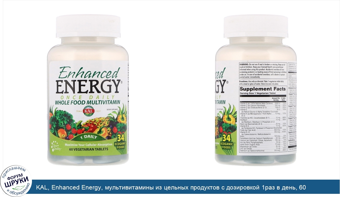 Друзья, если у вас есть отзыв/дополнение/комментарий/вопрос относительно KAL, Enhanced Energy, мультивитамины из цельных продуктов с дозировкой 1раз в день, 60 растительных таблеток - напишите его ответом в эту тему (это будет полезно всему сообществу в целом и вам в отдельности).