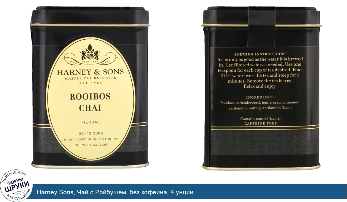 Друзья, если у вас есть отзыв/дополнение/комментарий/вопрос относительно Harney Sons, Чай с Ройбушем, без кофеина, 4 унции - напишите его ответом в эту тему (это будет полезно всему сообществу в целом и вам в отдельности).