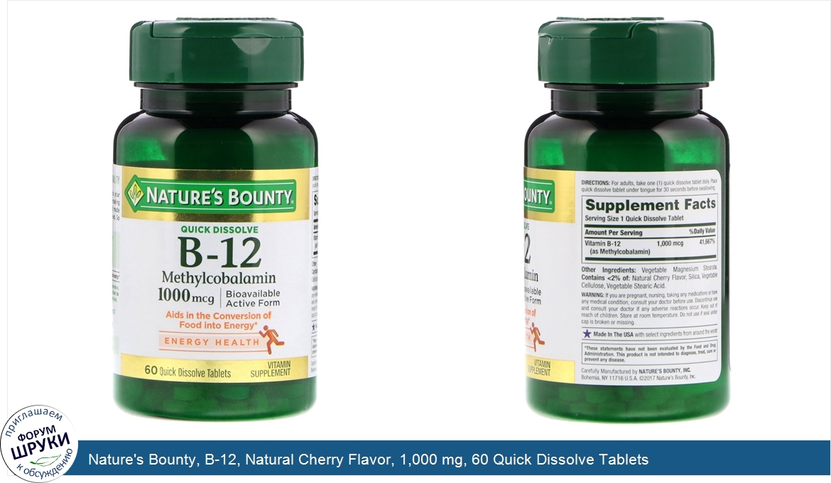 ru Nature's Bounty, B-12, Natural Cherry Flavor, 1,000 mg, 60 Quick Dissolve Tablets