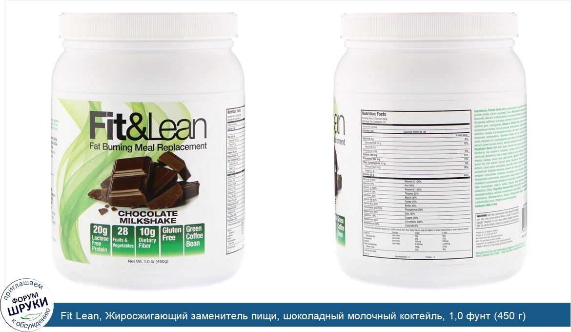 20 г белка без лактозы. 28 фруктов и овощей. 10 г диетической клетчатки. Не содержит глютена. Зеленые кофейные зерна. Fit Lean Fat Burning Meal Replacement. шоколадный коктейль содержит ключевые нутриенты, необхо...
