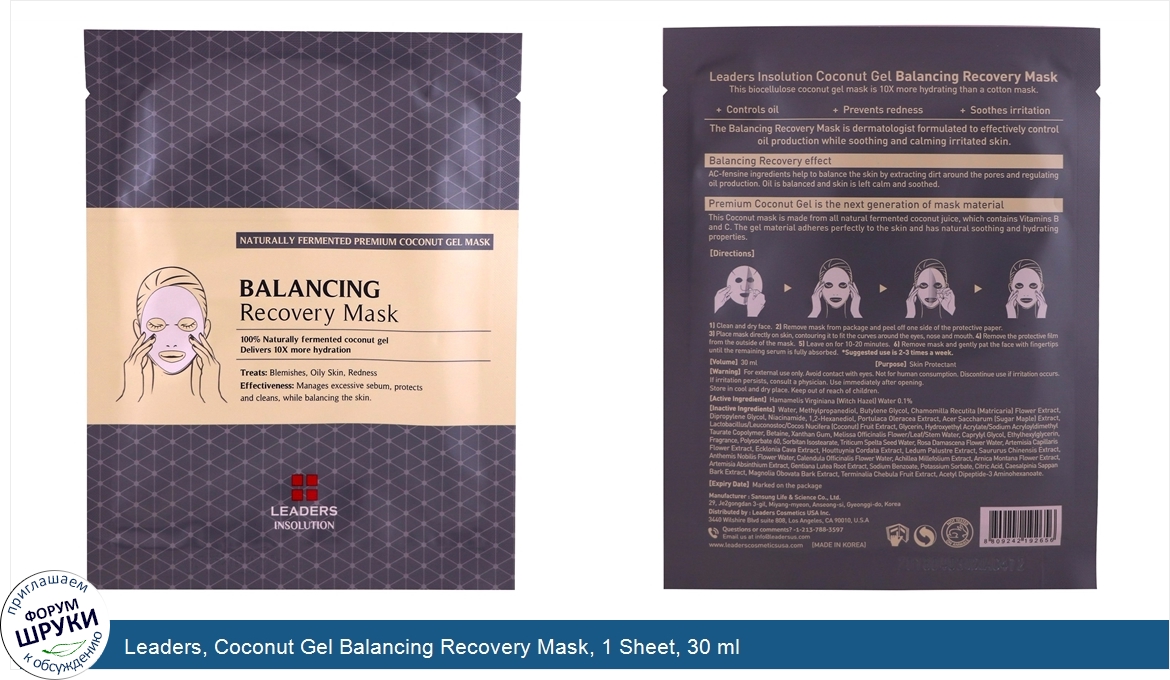 Друзья, если у вас есть отзыв/дополнение/комментарий/вопрос относительно Leaders, Coconut Gel Balancing Recovery Mask, 1 Sheet, 30 ml - напишите его ответом в эту тему (это будет полезно всему сообществу в целом и вам в отдельности).