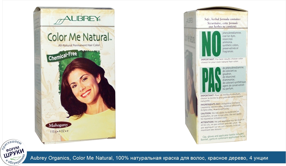 Друзья, если у вас есть отзыв/дополнение/комментарий/вопрос относительно Aubrey Organics, Color Me Natural, 100% натуральная краска для волос, красное дерево, 4 унции (115 г) - напишите его ответом в эту тему (это будет полезно всему сообществу в целом и вам в отдельности).