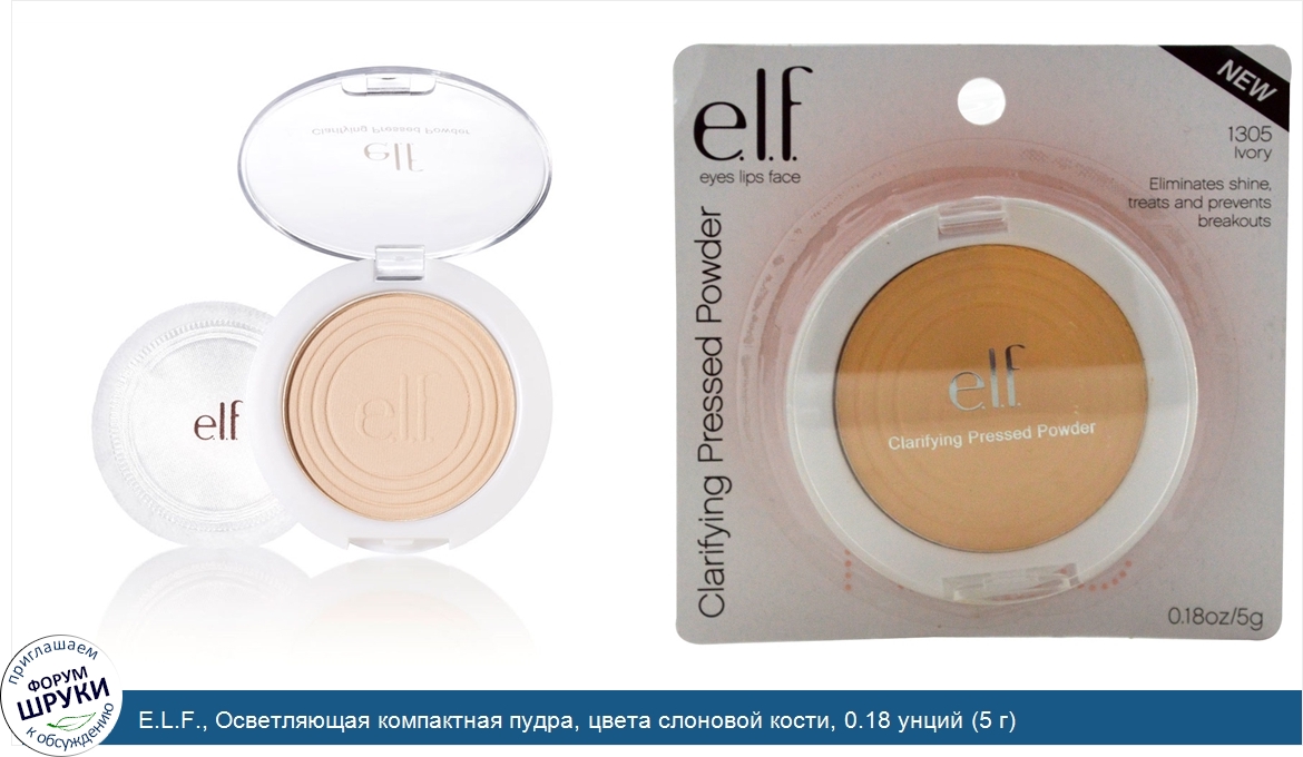 E.L.F., Осветляющая компактная пудра, цвета слоновой кости, 0.18 унций (5 г)