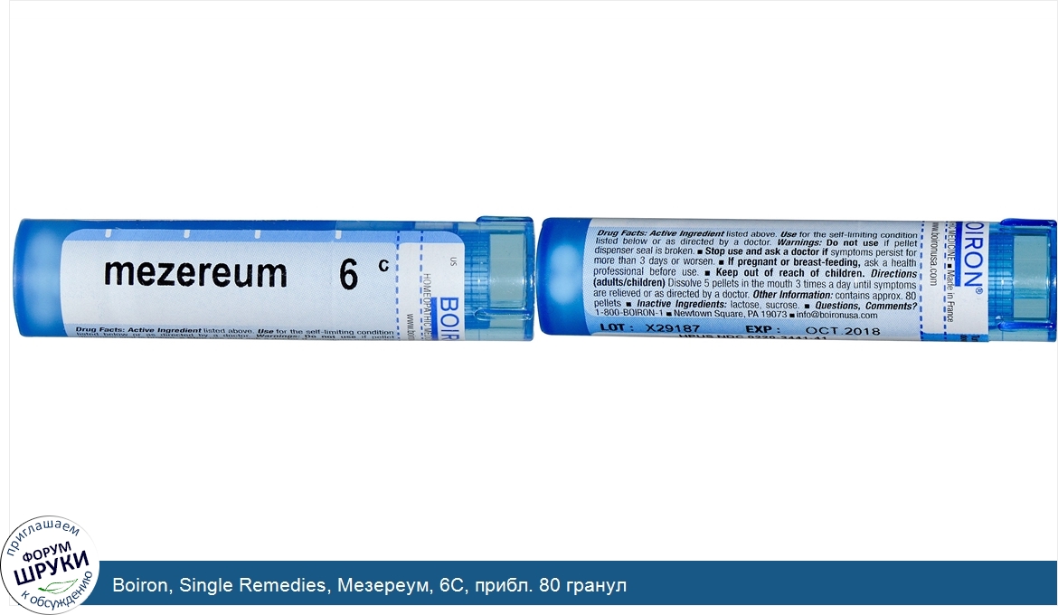 ru Boiron, Single Remedies, Мезереум, 6С, прибл. 80 гранул