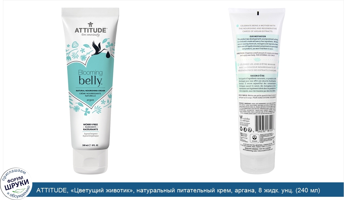 Друзья, если у вас есть отзыв/дополнение/комментарий/вопрос относительно ATTITUDE, «Цветущий животик», натуральный питательный крем, аргана, 8 жидк. унц. (240 мл) - напишите его ответом в эту тему (это будет полезно всему сообществу в целом и вам в отдельности).