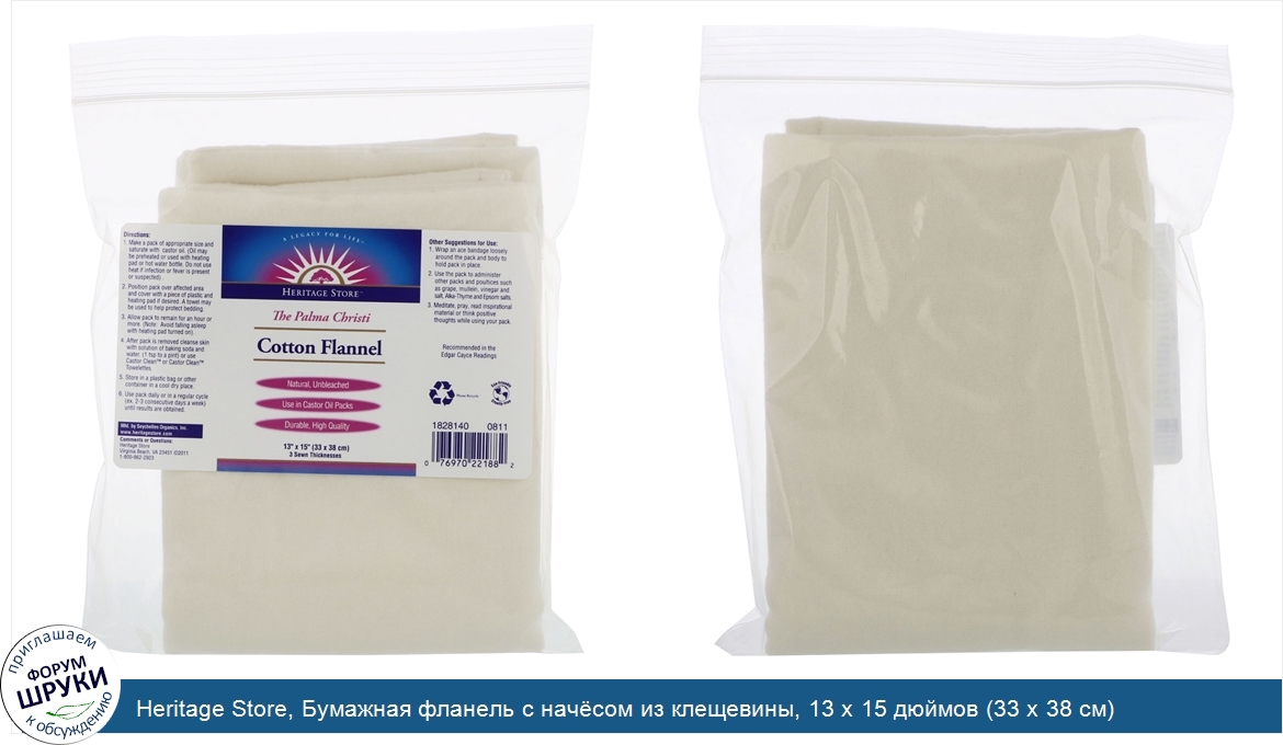Heritage Store, Бумажная фланель с начёсом из клещевины, 13 x 15 дюймов (33 x 38 см)