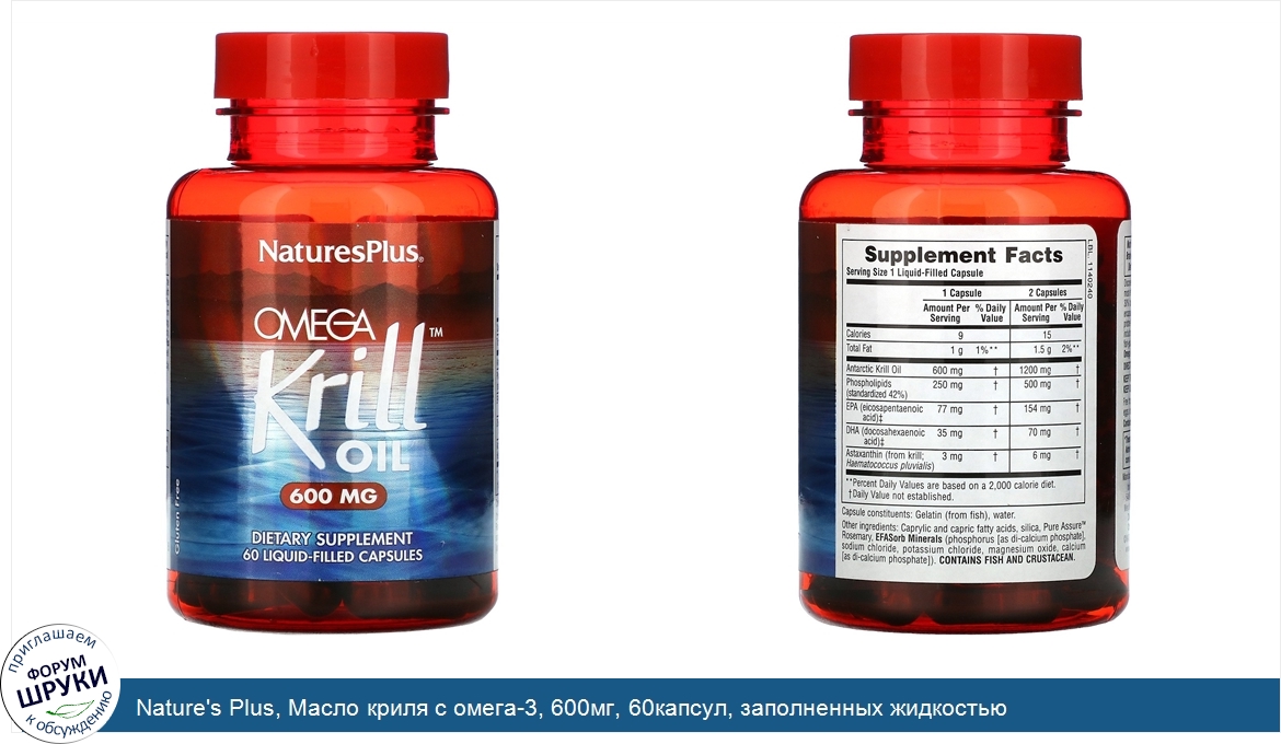 Друзья, если у вас есть отзыв/дополнение/комментарий/вопрос относительно Nature's Plus, Масло криля с омега-3, 600мг, 60капсул, заполненных жидкостью - напишите его ответом в эту тему (это будет полезно всему сообществу в целом и вам в отдельности).