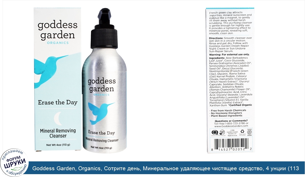 Друзья, если у вас есть отзыв/дополнение/комментарий/вопрос относительно Goddess Garden, Organics, Сотрите день, Минеральное удаляющее чистящее средство, 4 унции (113 г) - напишите его ответом в эту тему (это будет полезно всему сообществу в целом и вам в отдельности).