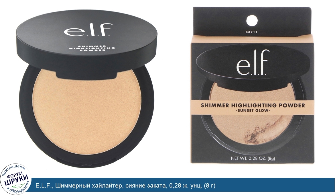 Друзья, если у вас есть отзыв/дополнение/комментарий/вопрос относительно E.L.F., Шиммерный хайлайтер, сияние заката, 0,28 ж. унц. (8 г) - напишите его ответом в эту тему (это будет полезно всему сообществу в целом и вам в отдельности).