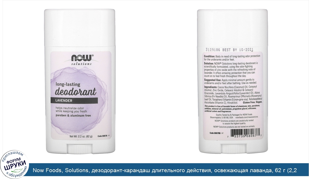 Друзья, если у вас есть отзыв/дополнение/комментарий/вопрос относительно Now Foods, Solutions, дезодорант-карандаш длительного действия, освежающая лаванда, 62 г (2,2 унции) - напишите его ответом в эту тему (это будет полезно всему сообществу в целом и вам в отдельности).